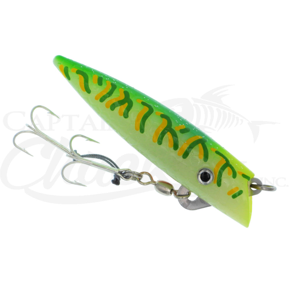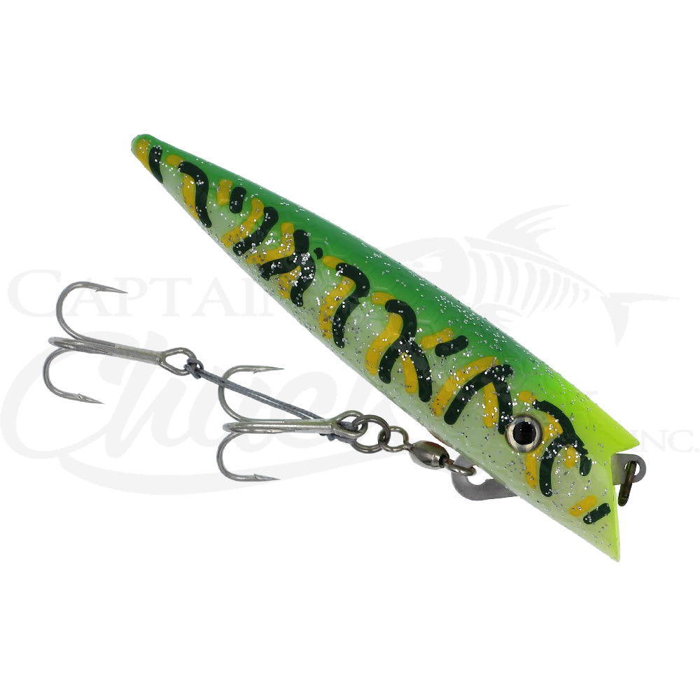 The Captain's Choice trolling plug with its 4" and 5" length, unique shape and action is a fish catching machine. They come in many fish catching colors. They feature a unique scale like body pattern and a have a rattle like no other.
