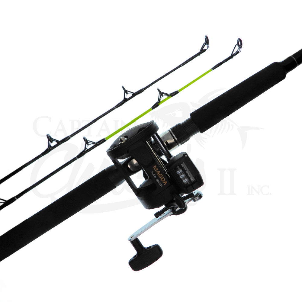 Okuma's Classic Pro Trolling rod paired with a Magda 20D Line counter reel won't disappoint when chasing walleyes or smaller sport fish. These are very attractive rods with a gloss black finish, matching guides, and your choice of a chartreuse or black tip.