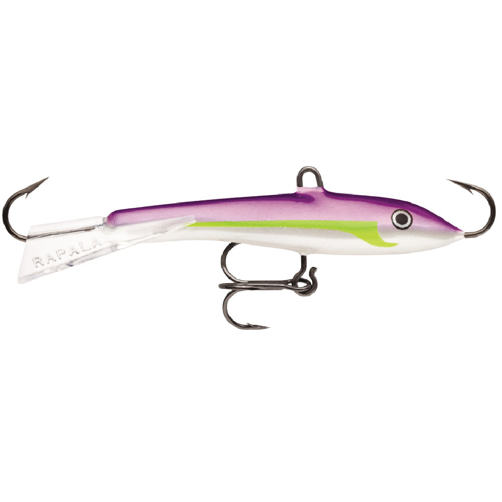 Swimming in tantalizing circles under the ice or in open water for suspended game fish, the Jigging Rap® features a balanced, weighted minnow profile. Single reversed hooks with center treble and eyelet, this bait can also be bottom bounced, yo-yo style off the bottom with unbeatable results. Wide range of sizes is complimented with natural and glow color patterns.