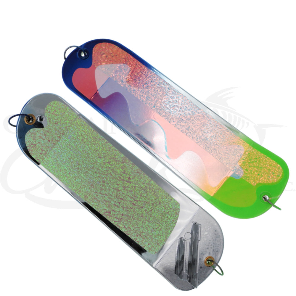 Introducing Mr. Chrome's line of rotating flashers! They come in the popular 8" length and feature a fixed fin for fish attracting rotation. They feature high quality terminal tackle to attach to your rod and lure. They have used the newest tape and paint technology available when it comes to the creation of their colors. Pick some up today, put your favorite fly behind it and hang on!