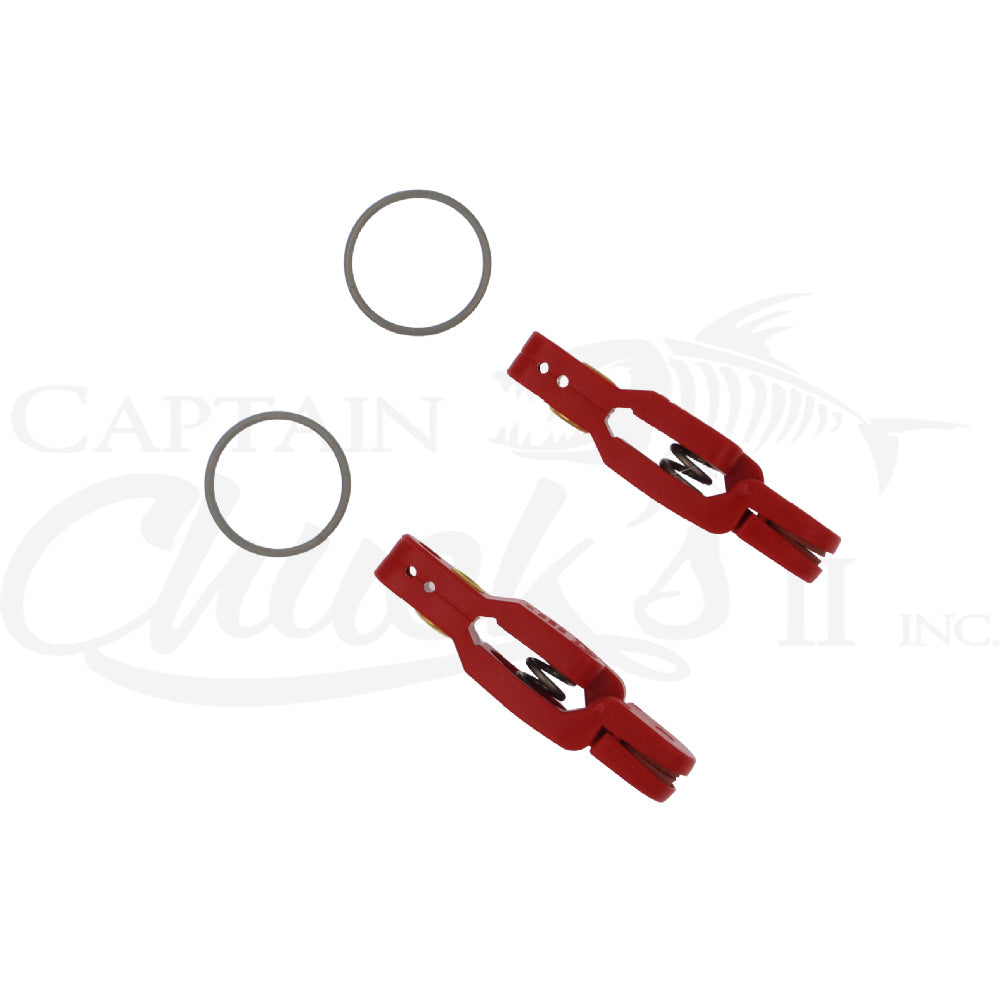 This half size clip has an extra heavy spring tension and includes a split ring. You simply position your fishing line behind the pin that protrudes through the center of the pads to hold your snap weight securely on the line. This item is ideal of use with snap weight fishing and super braid lines. You can also use this clip on the OR12 and OR31 Side Planers.
