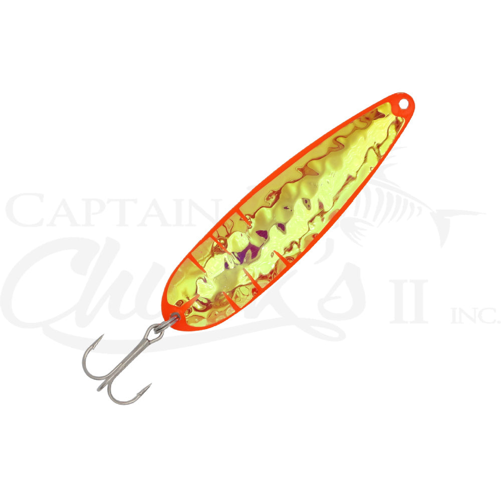 Moonshine's RV Trolling Spoons are some of the brightest glowing lures that you'll find on the market today! These spoons have the same great features of the original but have an RV tape for a fish attracting, unique look. Moonshine is known for producing high quality Super Glow tackle products. Each lure is hand painted, taped and inspected to ensure a quality product. After being exposed to natural or UV light, these spoons will be glowing for hours on end. Moonshine RV Trolling Spoons are also ideal for being fished with during the day as they are highly UV-reflective.