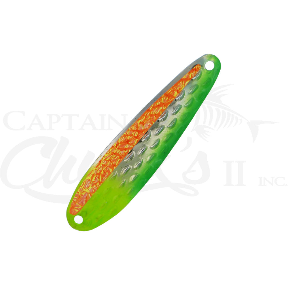 Introducing the Yeck Lures Y66 standard size Trolling spoon. These are a lighter weight spoon on a 4", half ripple blank that troll well at any speed. They feature a variety of fish catching and glow colors. They are equipped with premium split rings and hooks.