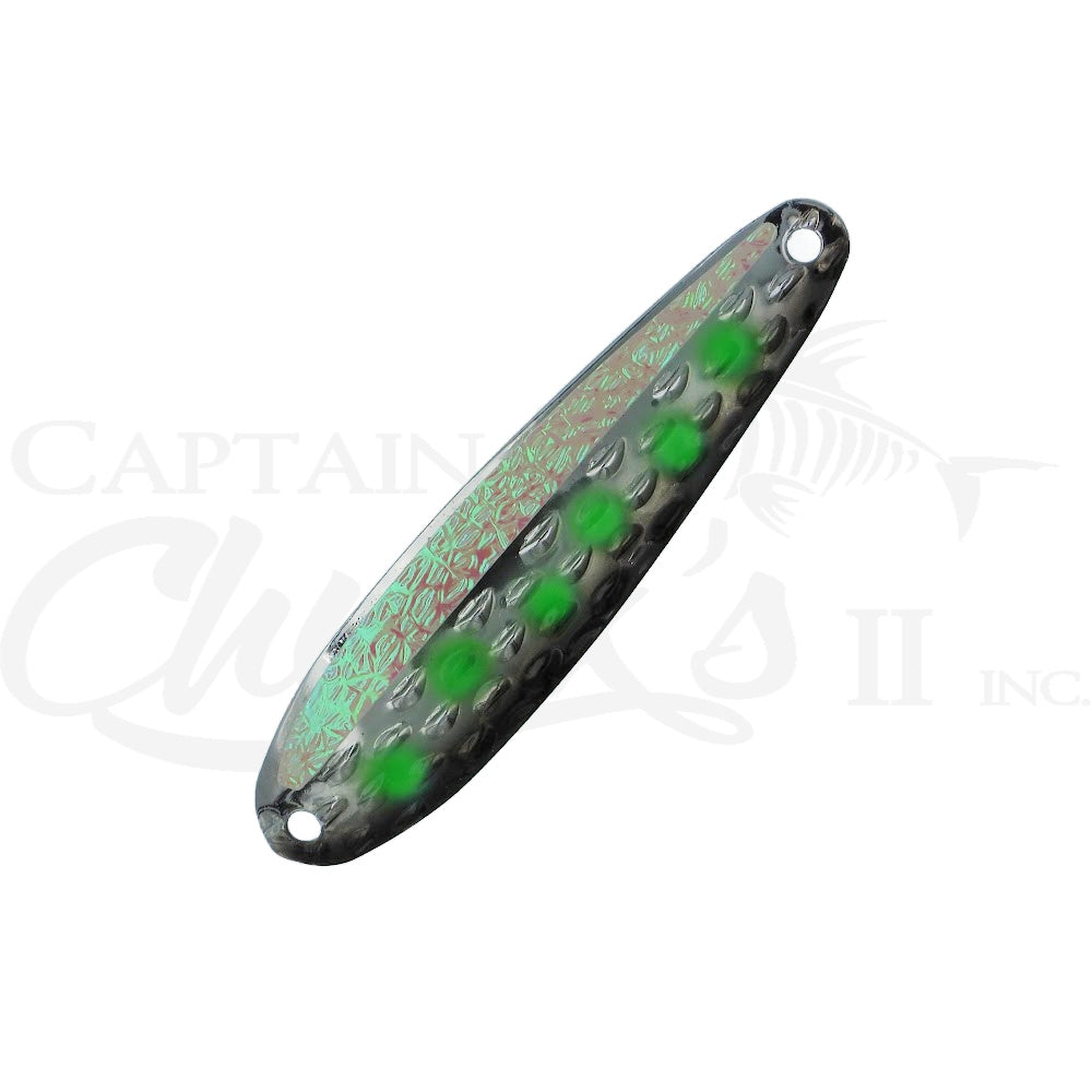 Introducing the Yeck Lures Y66 standard size Trolling spoon. These are a lighter weight spoon on a 4", half ripple blank that troll well at any speed. They feature a variety of fish catching and glow colors. They are equipped with premium split rings and hooks.