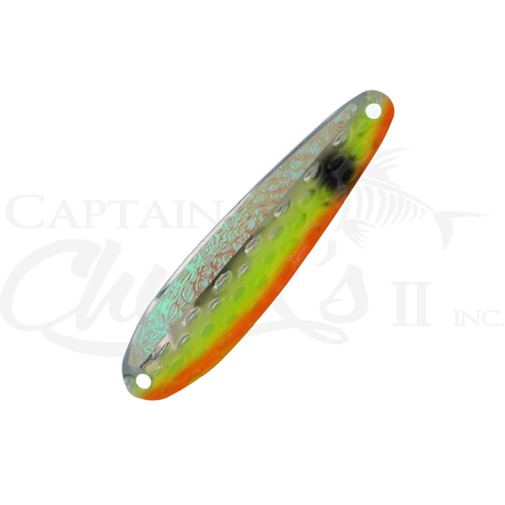 Introducing the Yeck Lures Y66 standard size Trolling spoon. These are a lighter weight spoon on a 4", half ripple blank that troll well at any speed. They feature a variety of fish catching and glow colors. They are equipped with premium split rings and hooks.