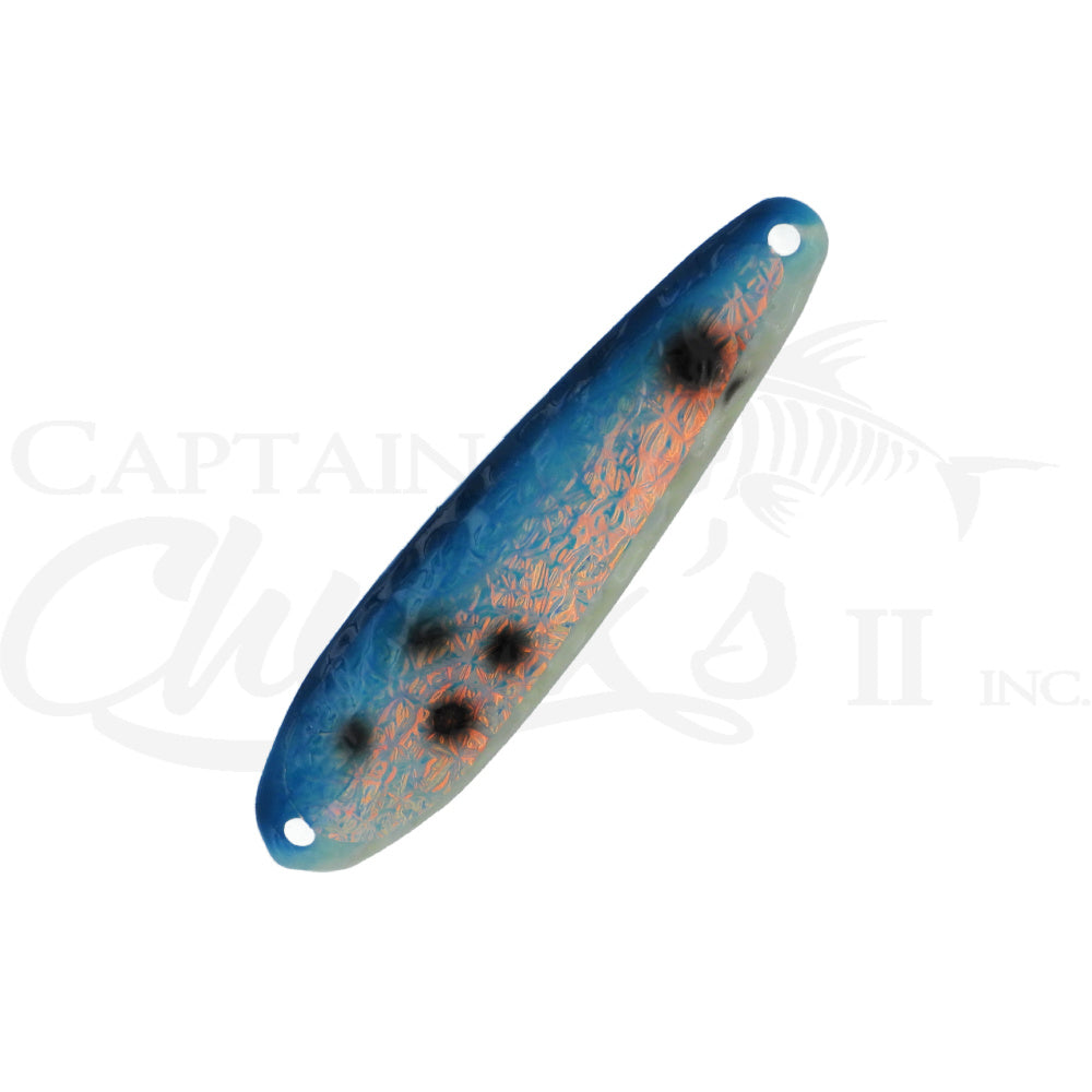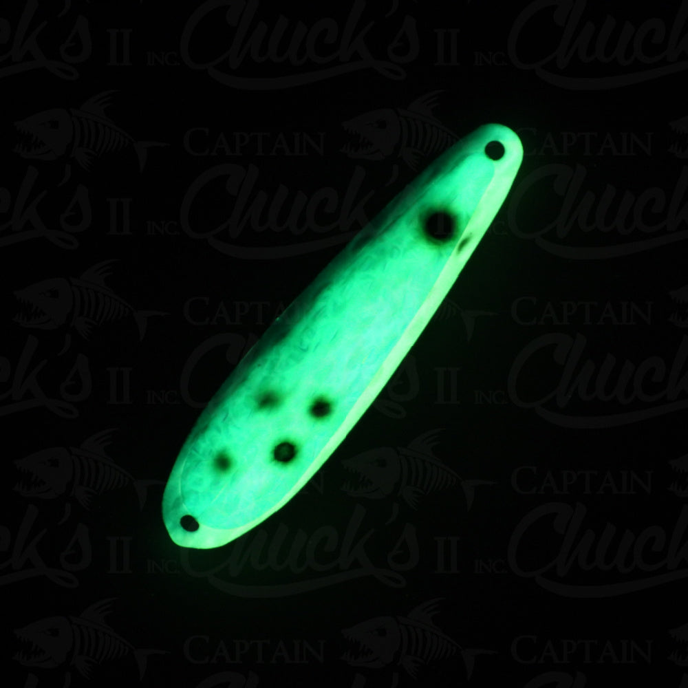 Introducing the Yeck Lures YG66 Standard size Trolling spoon. These are a lighter weight spoon on a 4" ripple blank that troll well at any speed. They feature a variety of fish catching glow colors and come with premium split rings and hooks.