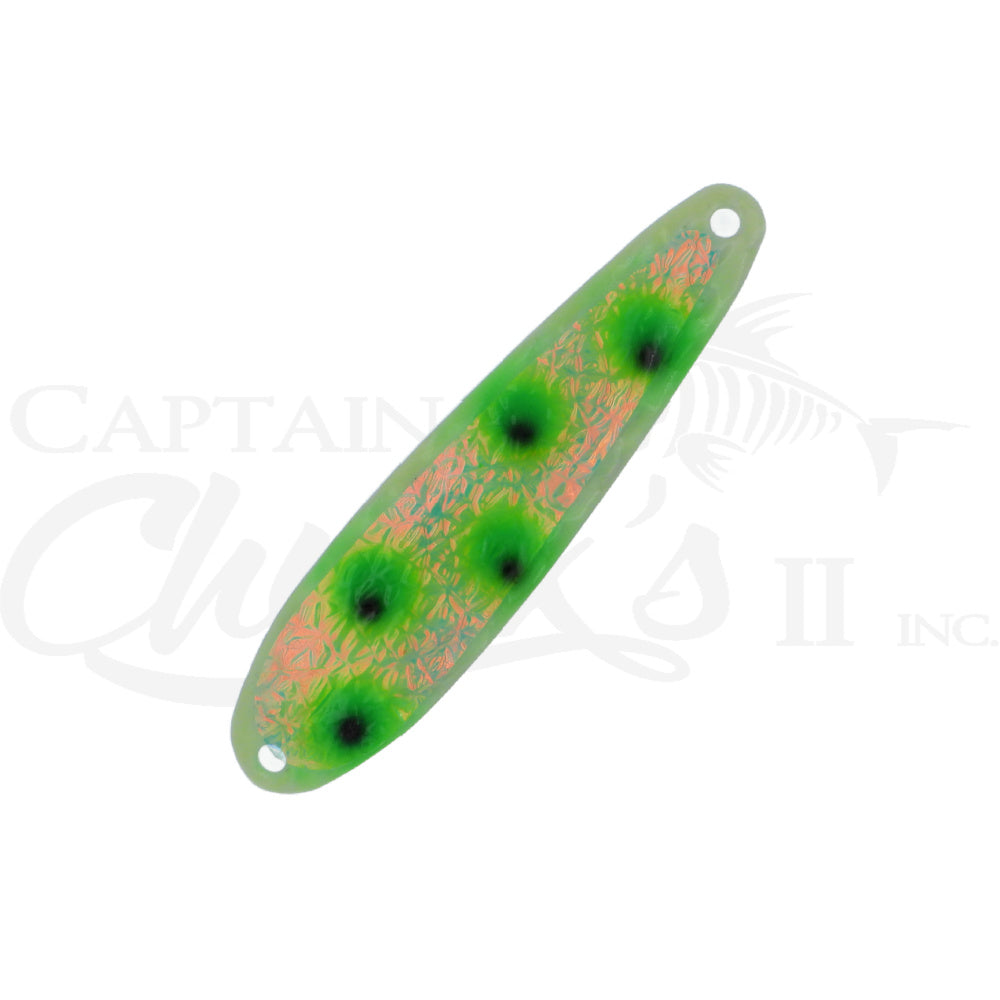 Introducing the Yeck Lures YG66 Standard size Trolling spoon. These are a lighter weight spoon on a 4" ripple blank that troll well at any speed. They feature a variety of fish catching glow colors and come with premium split rings and hooks.