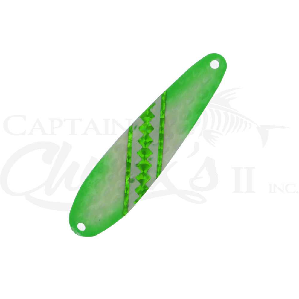 Introducing the Yeck Lures YG66 Standard size Trolling spoon. These are a lighter weight spoon on a 4" ripple blank that troll well at any speed. They feature a variety of fish catching glow colors and come with premium split rings and hooks.