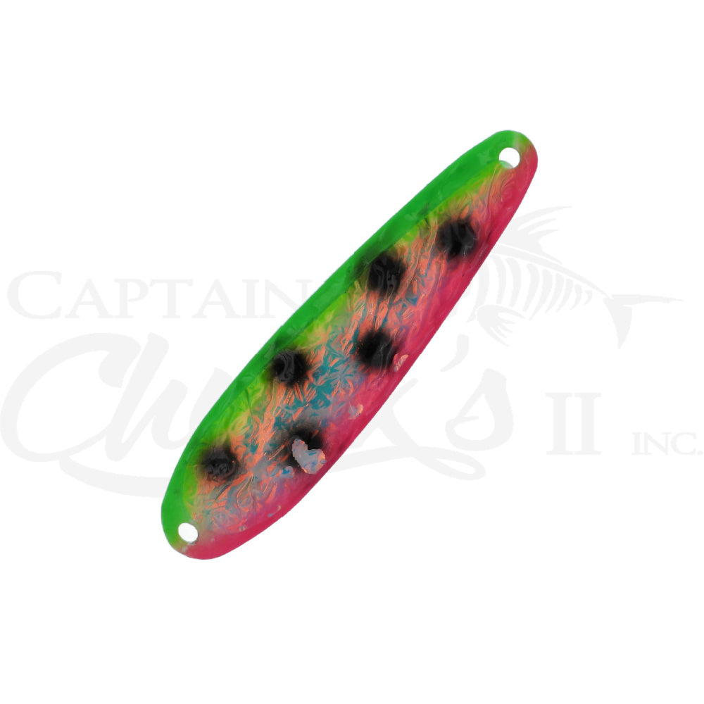 Introducing the Yeck Lures YG66 Standard size Trolling spoon. These are a lighter weight spoon on a 4" ripple blank that troll well at any speed. They feature a variety of fish catching glow colors and come with premium split rings and hooks.