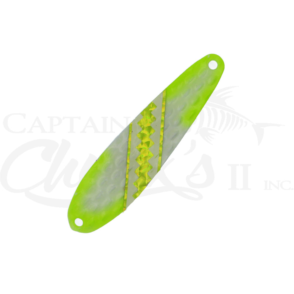 Introducing the Yeck Lures YG66 Standard size Trolling spoon. These are a lighter weight spoon on a 4" ripple blank that troll well at any speed. They feature a variety of fish catching glow colors and come with premium split rings and hooks.