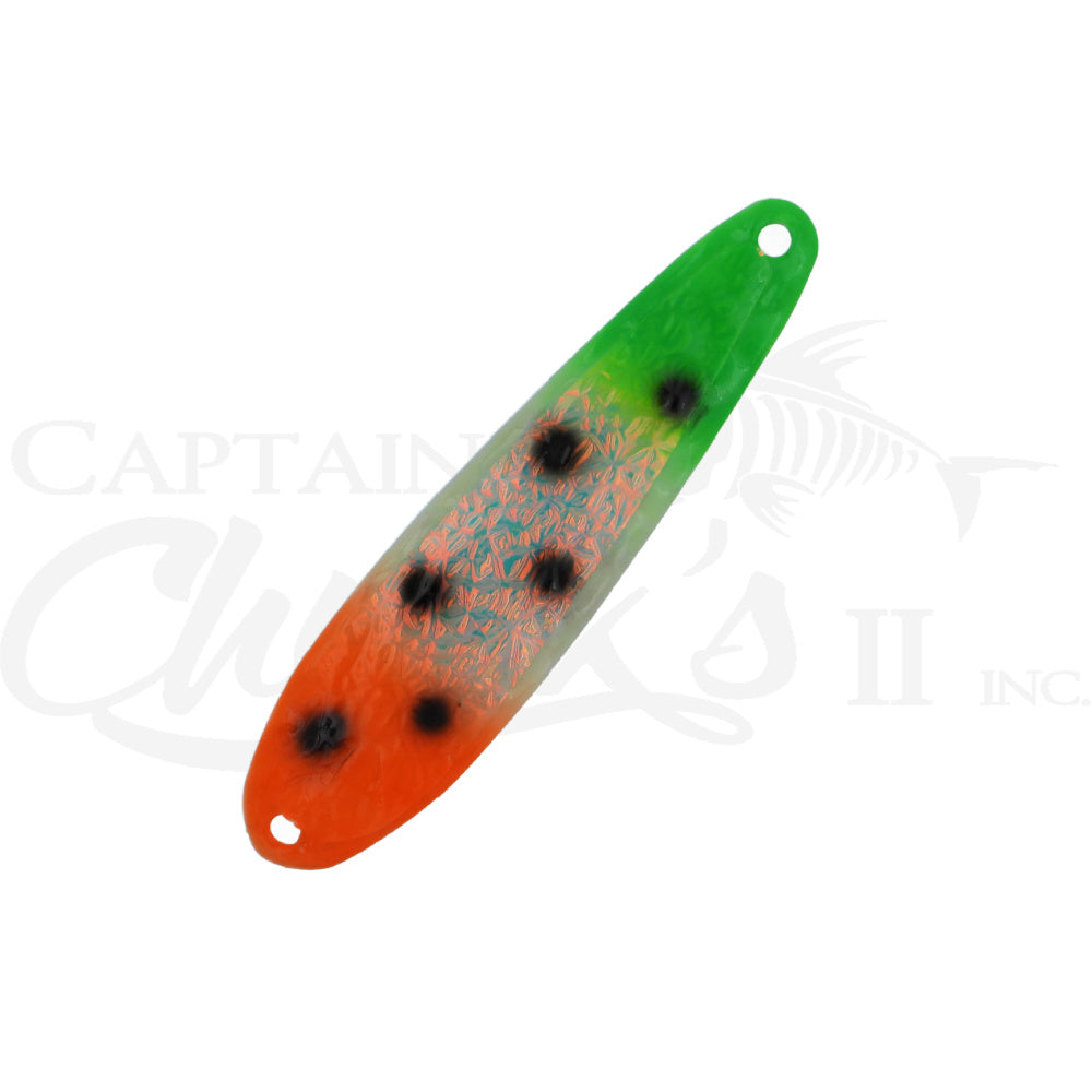 Introducing the Yeck Lures YG66 Standard size Trolling spoon. These are a lighter weight spoon on a 4" ripple blank that troll well at any speed. They feature a variety of fish catching glow colors and come with premium split rings and hooks.