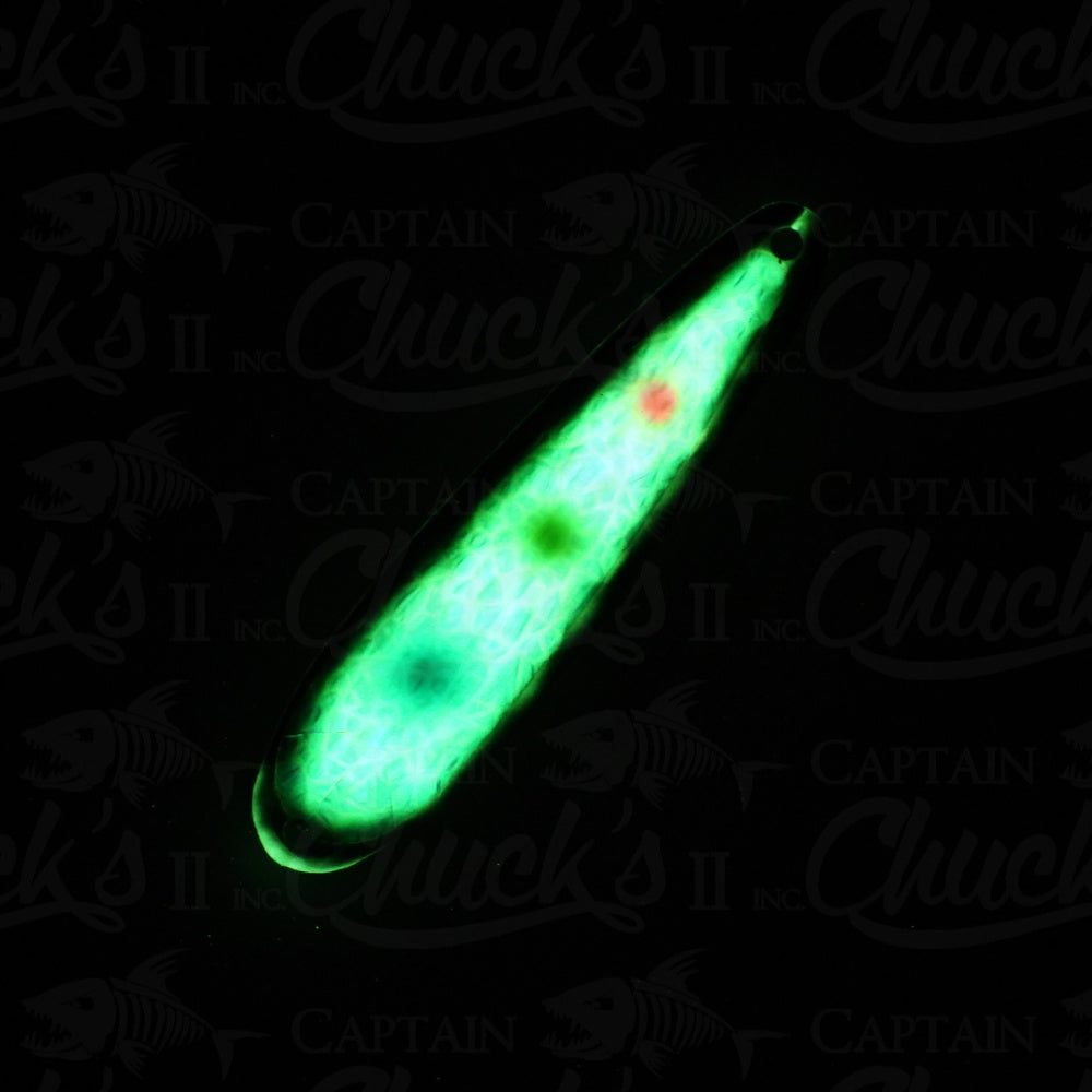 Introducing the Yeck Lures YG66 Standard size Trolling spoon. These are a lighter weight spoon on a 4" ripple blank that troll well at any speed. They feature a variety of fish catching glow colors and come with premium split rings and hooks.