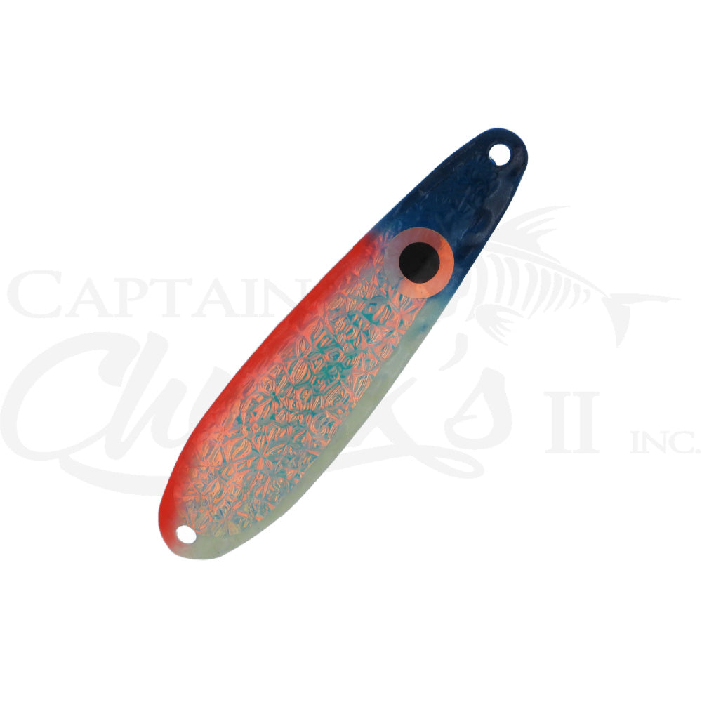 Introducing the Yeck Lures YG66 Standard size Trolling spoon. These are a lighter weight spoon on a 4" ripple blank that troll well at any speed. They feature a variety of fish catching glow colors and come with premium split rings and hooks.