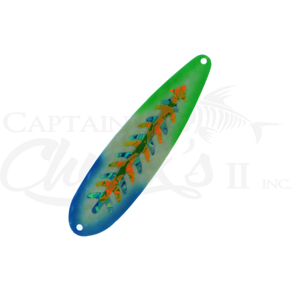 Introducing the Yeck Lures YG77 Magnum Trolling spoon. These are a lighter weight spoon on a 5" ripple blank that troll well at any speed. They feature a variety of fish catching glow colors and come with premium split rings and hooks.