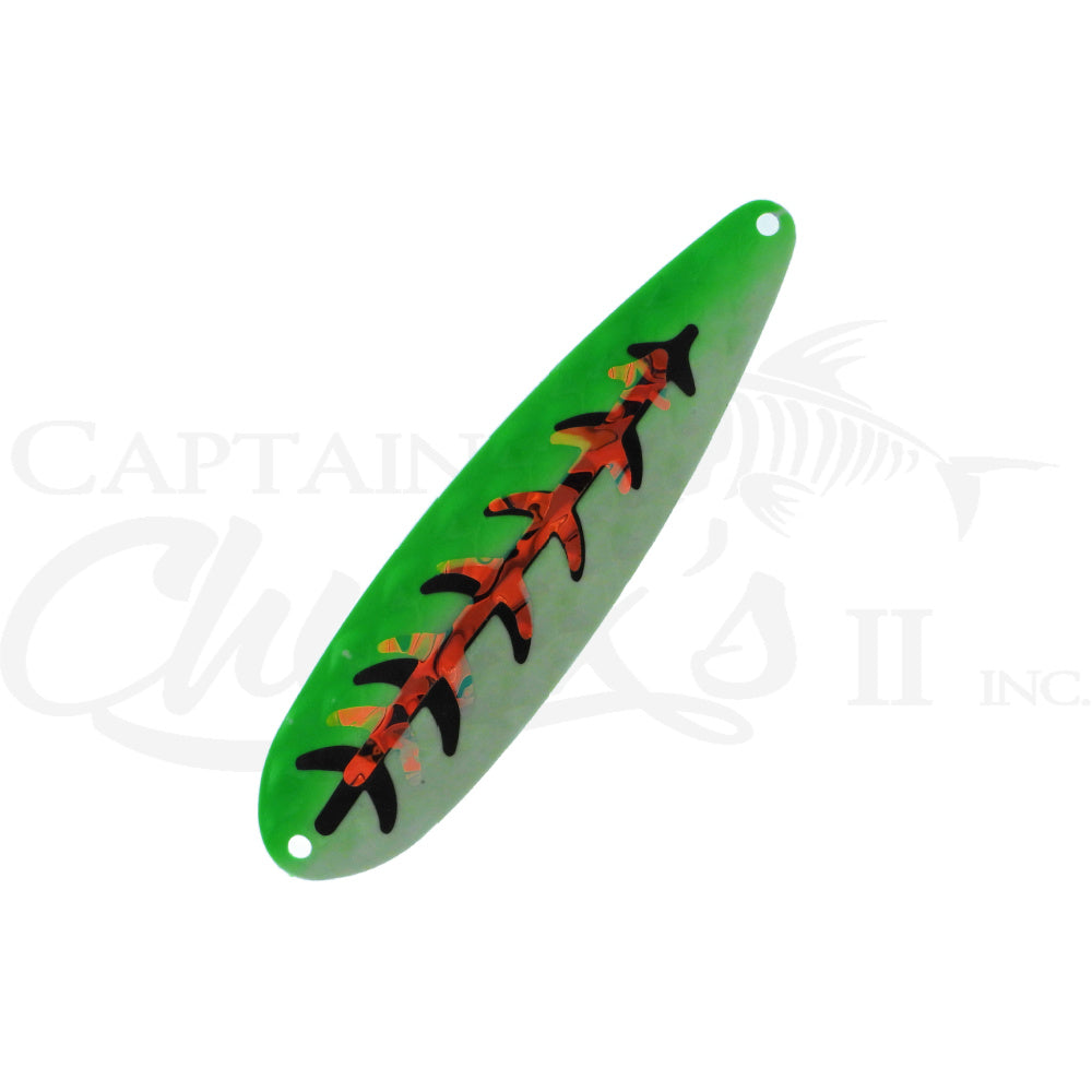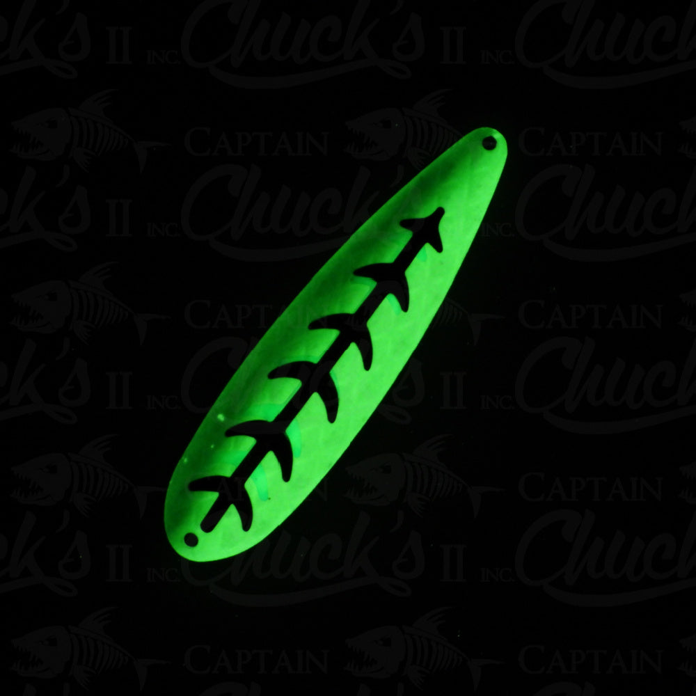 Introducing the Yeck Lures YG77 Magnum Trolling spoon. These are a lighter weight spoon on a 5" ripple blank that troll well at any speed. They feature a variety of fish catching glow colors and come with premium split rings and hooks.