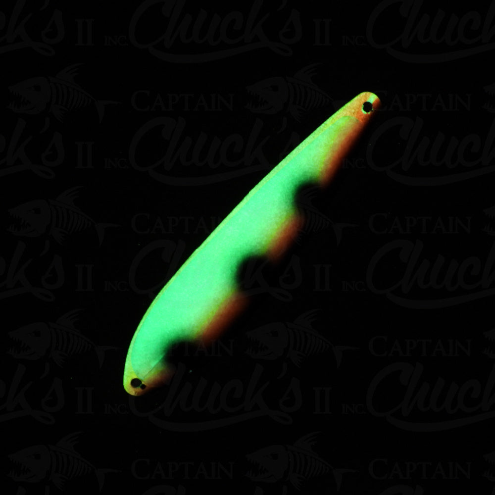 Introducing the Yeck Lures YG88 Magnum Trolling spoon. These are a lighter weight spoon on a 5 1/4" smooth blank that troll well at any speed. They feature a variety of fish catching glow colors and come with premium split rings and hooks.