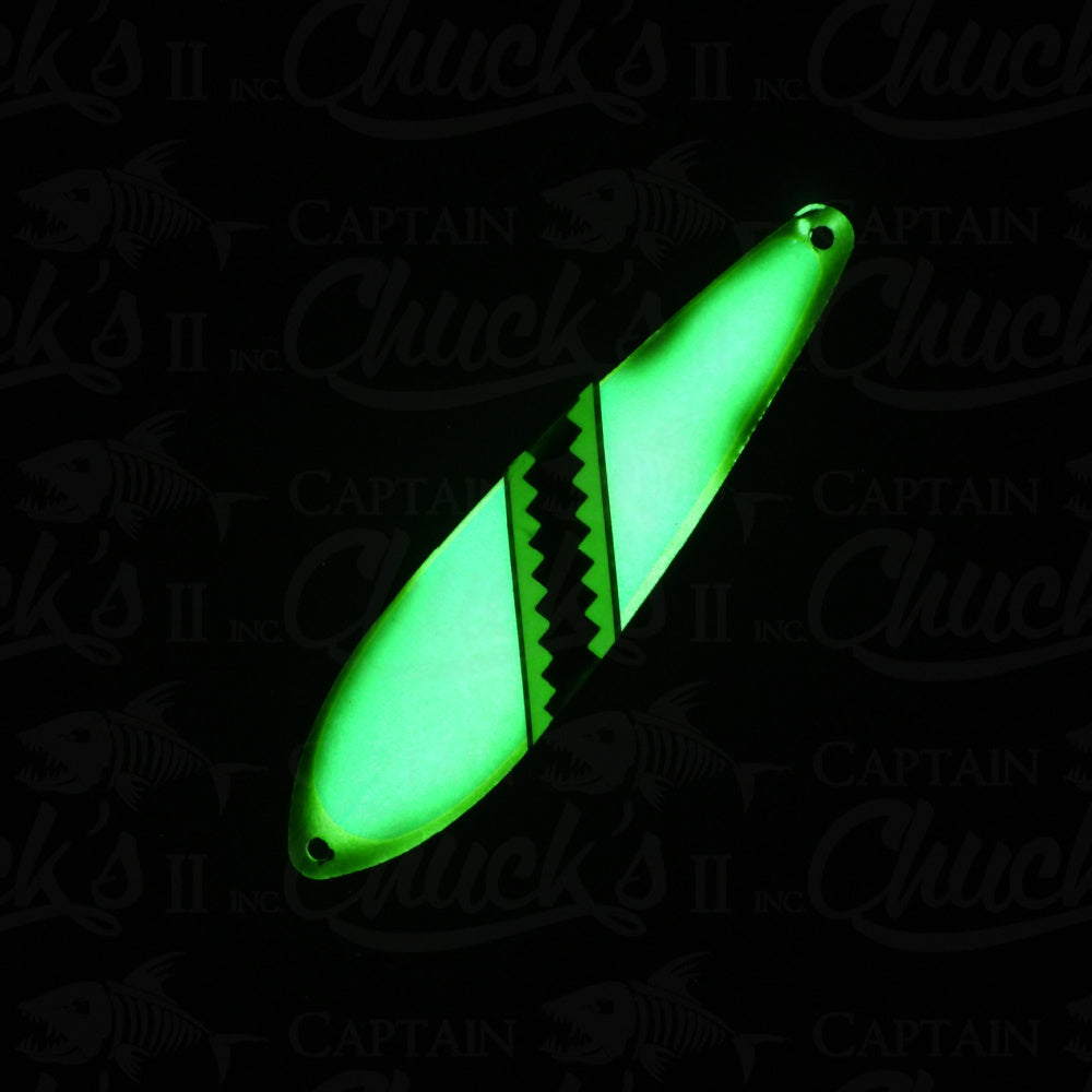 Introducing the Yeck Lures YG88 Magnum Trolling spoon. These are a lighter weight spoon on a 5 1/4" smooth blank that troll well at any speed. They feature a variety of fish catching glow colors and come with premium split rings and hooks.